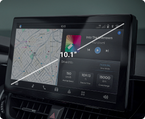 Uma tela ampla de 10.1” para melhor visualização de mapas, mídia e funções do veículo, com design moderno e alta definição.