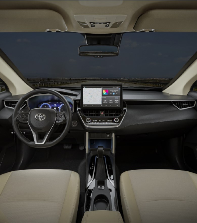 Personalize sua experiência com a multimídia do Corolla. Organize widgets na tela inicial, ajuste o modo claro e escuro automaticamente.